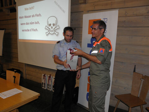 Neben den Aargauer Zivilschutzkommandanten nahmen auch einzelne Kommandanten aus den Nachbarkantonen teil. Bevor sich die Teilnehmer mit dem Hauptthema des Tages befassten standen diverse Einsatz- und Übungsberichte einzelner Zivilschutzkommandanten auf dem Programm. Unterbrochen wurde dieser Programmteil durch eine eindrückliche Vorführung seitens unseres Partners Feuerwehr. Mittels eines Modellaufbaus konnten zwei Feuerwehr-Instruktoren die verschiedenen Gefahren, die von Elektroinstallationen bei überfluteten Kellern ausgehen, aufzeigen.