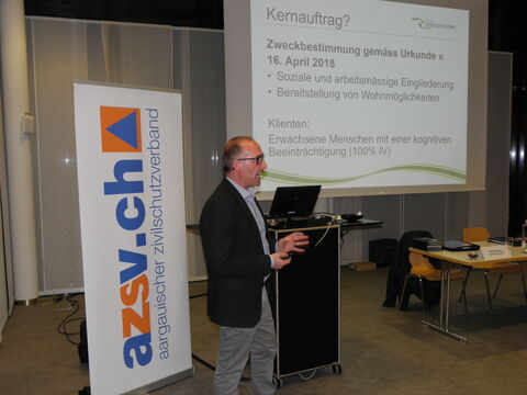 Die Versammlung wurde im Restaurant der Stiftung Orte zum Leben in Lenzburg, in welcher Menschen mit verschiedensten Beeinträchtigungen einen Ort zum Leben und Arbeiten finden, durchgeführt. Der Vizepräsident Beat Herzog vertrat den krankheitshalber abwesenden Präsidenten Romuald Brem. Herzog führte souverän durch die Mitgliederversammlung.